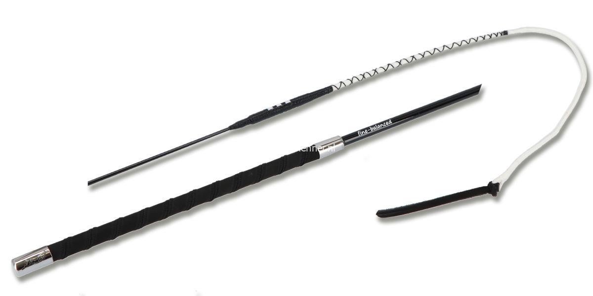 Fijn uitgebalanceerde fiberglas dressuurzweep met korte (30 cm) leren slag