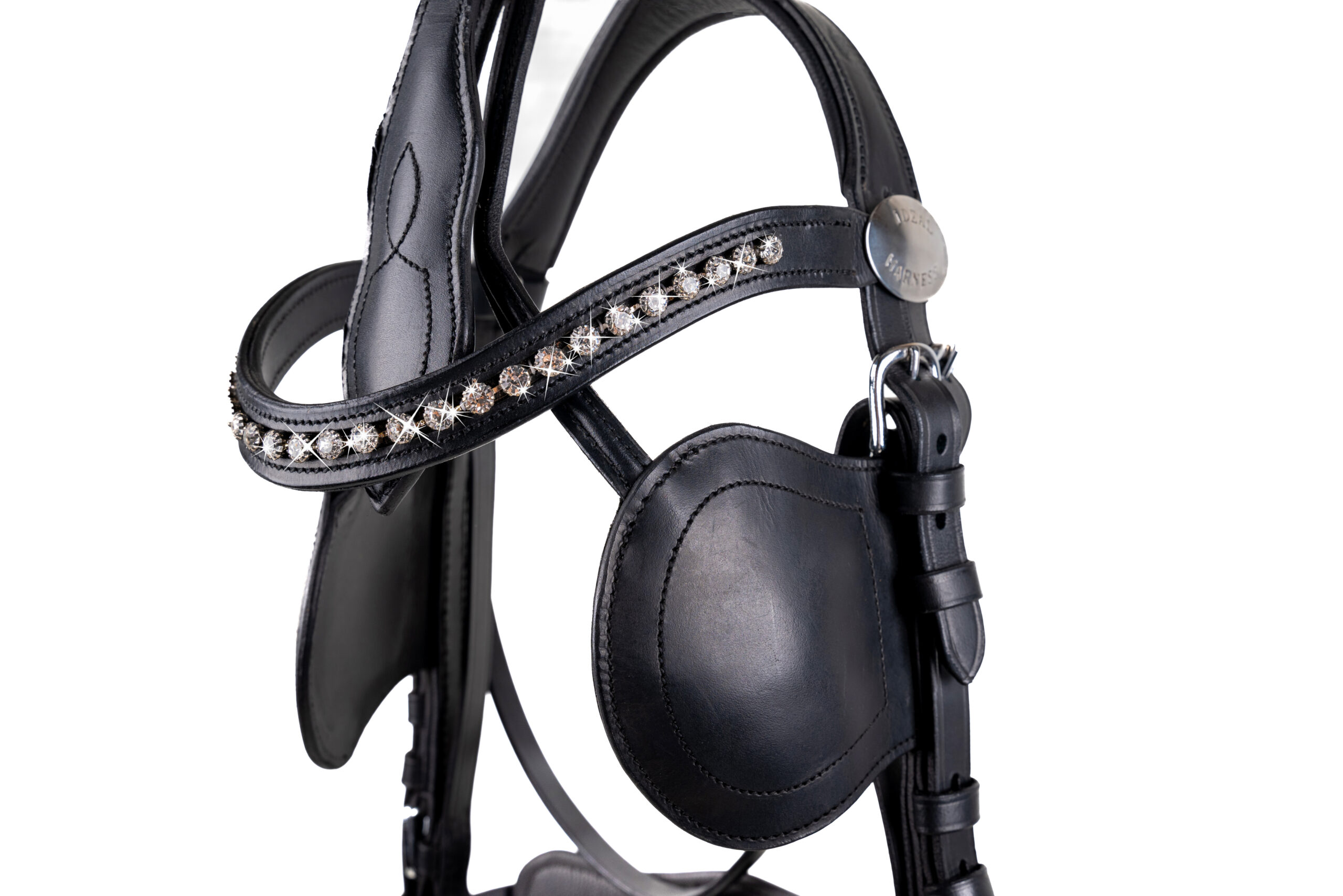 Leren frontriem met Swarovski ingelegd in gebogen model