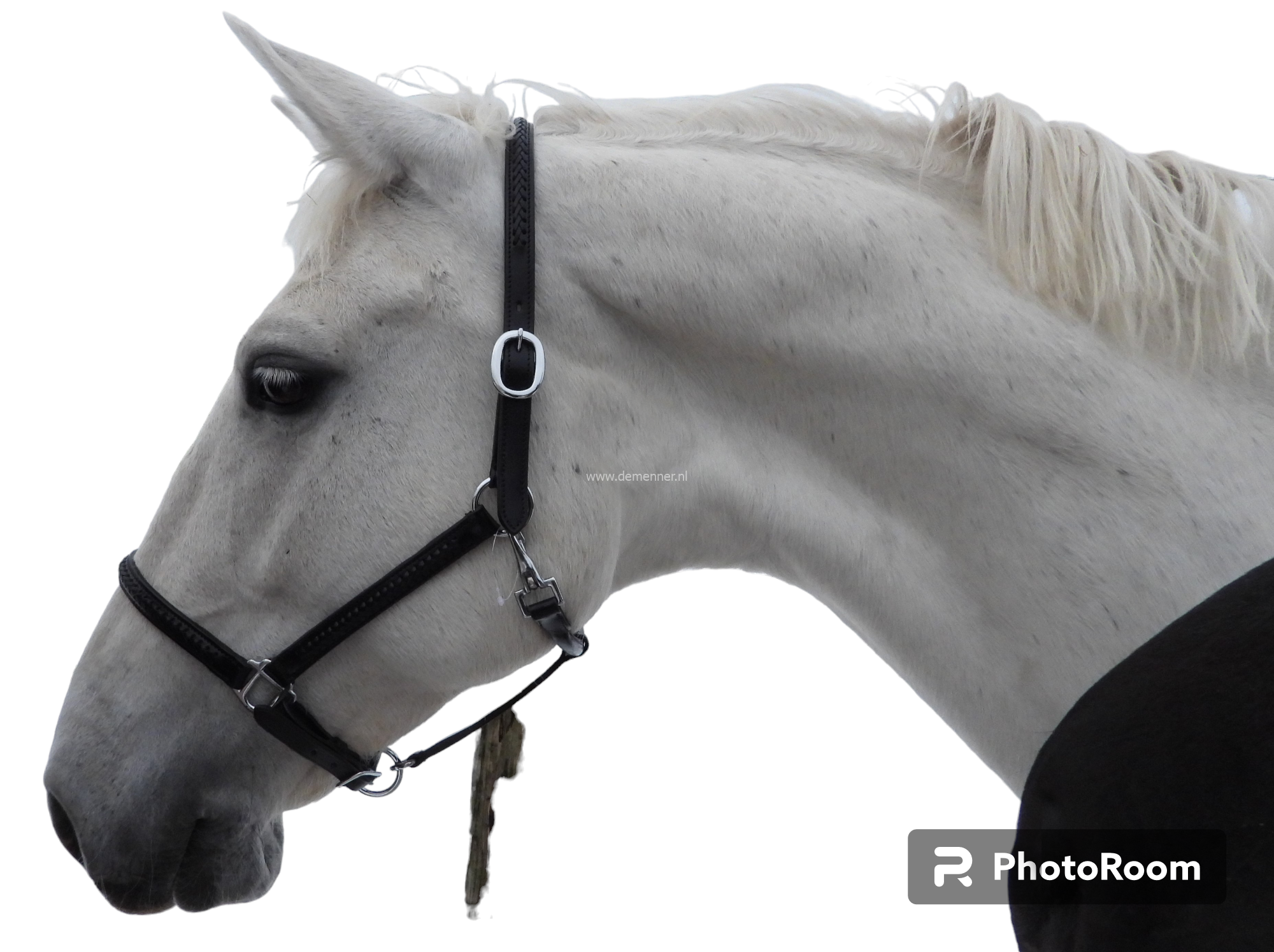 Zeer luxe engels leren gevlochten halster. Keelriem rondgenaaid met rvs fournituren