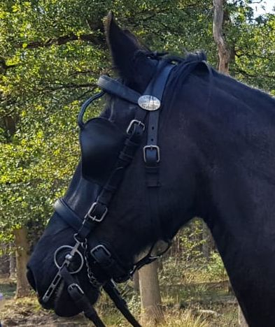 Ideal Equestrian luxe lederen hoofdstel met frondeel met ingelegde ketting en marathon/halve oogkleppen