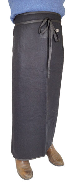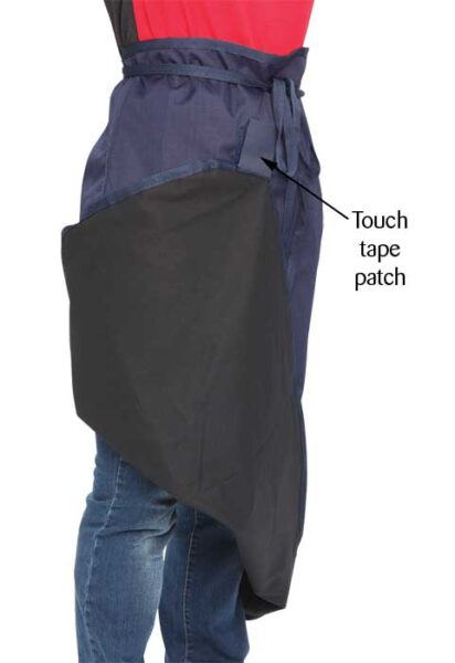 Voorzien van een handig klittenband om de onderkant van het schort omhoog vast te kunnen zetten en zo het op- en afstappen van de koets te vergemakkelijken.