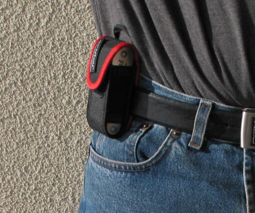 Compleet met een stevige, functionele tas die eenvoudig aan een riem te bevestigen is.