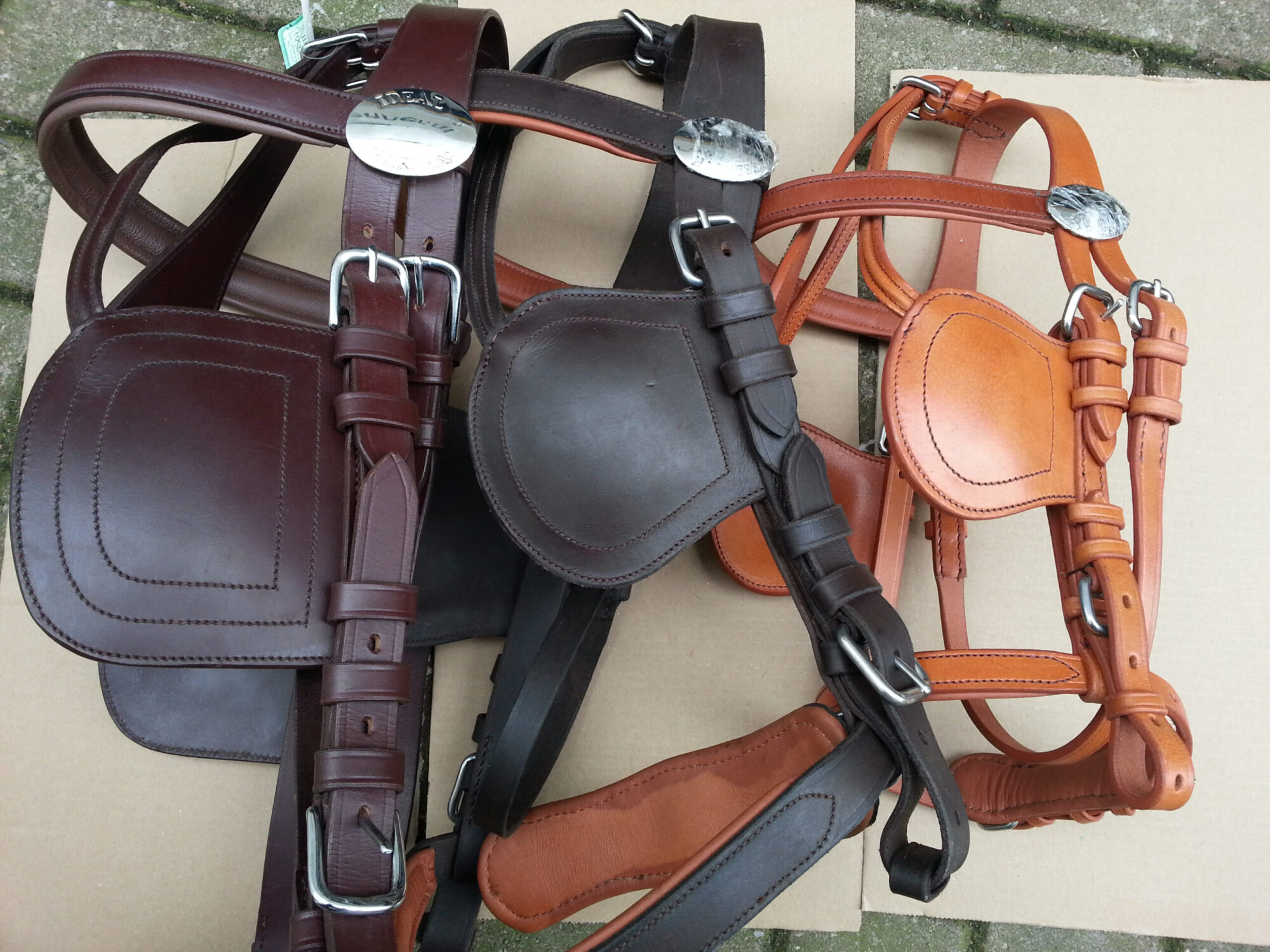 Tuighoofdstel leer, met vierkante kleppen of zonder oogkleppen.